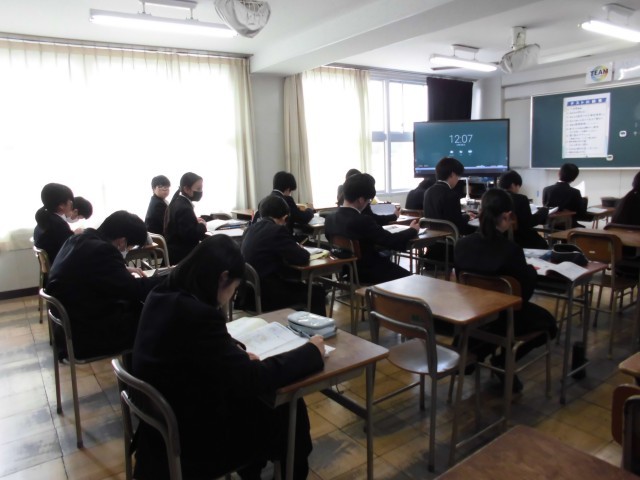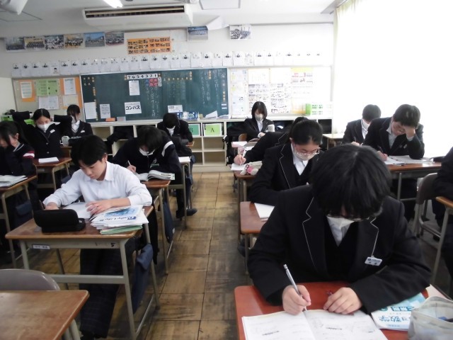 今日から総合テストがはじまりました。3時間目までテストを行い、4時間目は自習の時間でしたが黙々と勉強に取り組む姿がありました。1年生として集大成のテストになるので、最後まで全力を出し切ってくれることを願っています。