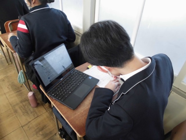 本日の学活の様子です。公立高校の一般入試に向けて、受検計画を立てました。入試まで残り少し。体調を整えて臨めるようにしてほしいです。