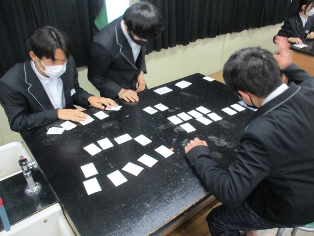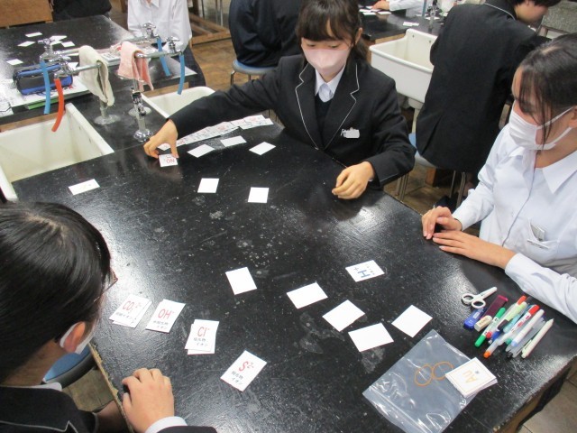 理科では、元素と化合物についてカードゲームで復習をしていました。