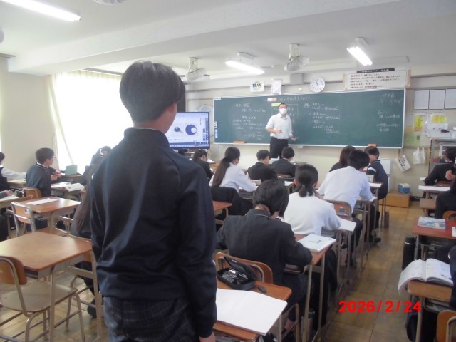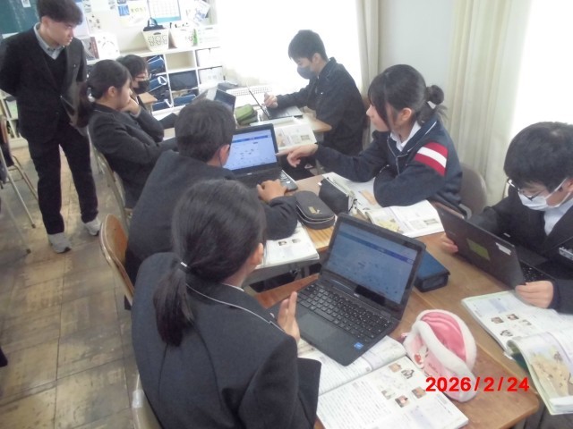 温かくなってきて、気持ちの良い天気となりました。連休明けですが授業に一生懸命に取り組み、問いかけに対して自分の考えを発表する様子が見られました。また、社会の授業では、キャンバというアプリを使って、グループで「応仁の乱の後、どのように社会が変化したか。」について話し合いながら時代背景をとらえることができていました。真剣に考えて、授業に臨む様子が当たり前になってきた1年生。後輩たちが入学してきたら、行動で示せるといいですね!