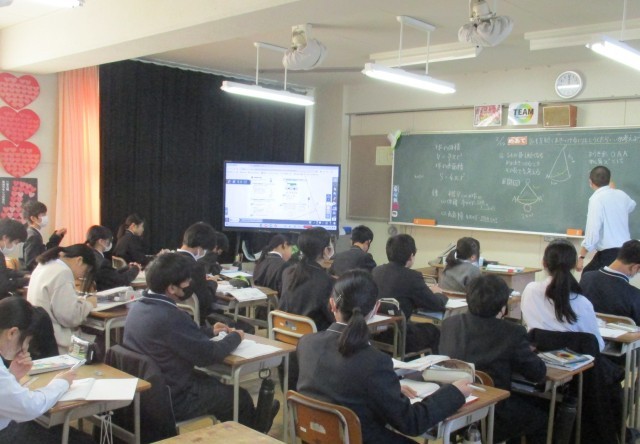 円すいにひもを巻き付けるとき、どのように巻くと一番短くなるか?という問題に取り組みました。