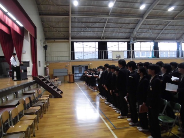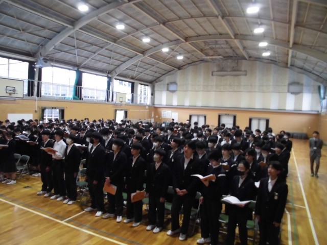 1、2時間目に体育館で卒業式の練習を行いました。卒業式まで1週間。3年間の思いを大切に、最後の週を過ごしてほしいと思います。