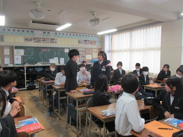 英語では、知っている文や単語を使って、ペアでレストランでのやりとりをしていました。