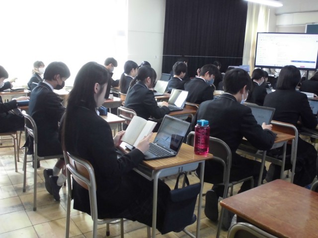 4時間目の国語の様子です。おすすめの本を紹介するためのスライド作りを行っていました。工夫を凝らしたスライドが多くみられました。