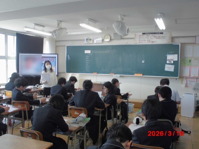 英語の授業では、疑問文のおさらいをしました。分からないところは、仲間と確認し合う姿がありました。