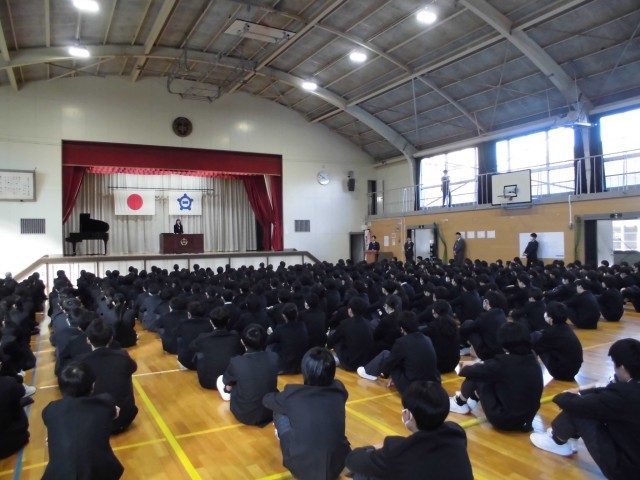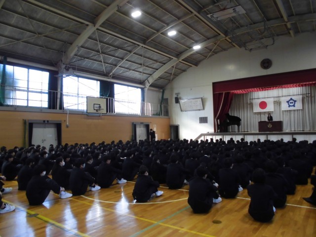 本日は修了式が行われました。これまではオンラインでの集会でしたが、今回はコロナ後初めて、体育館に全員集まっての修了式でした。緊張感のある中、校長先生のお話を静かに聞き入っていました。