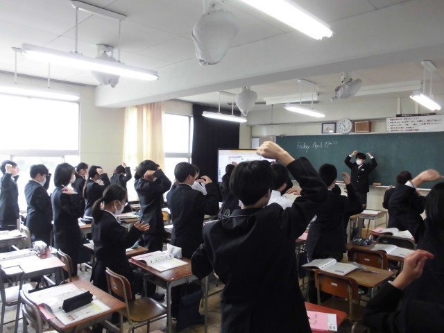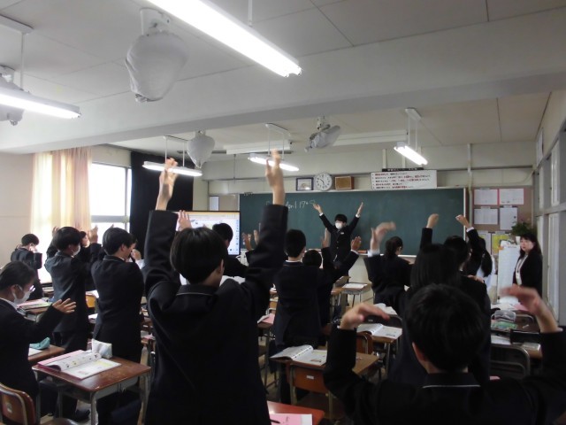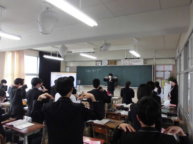 英語の授業の様子です。歌を口ずさみ、体を動かしながらアルファベットを覚えていました。先生の話を一生懸命聞き、理解しようと努める姿が見られました。