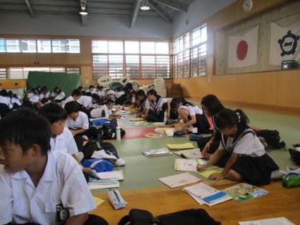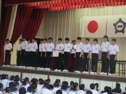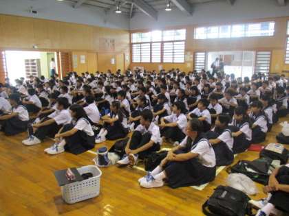 1年生の学年集会では水難事故・交通事故の話、生活の話と部活動の話がありました。