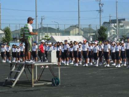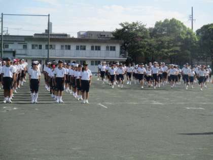 休み明けのテストの後、雨の上がったグラウンドで、今日から体育祭の練習がスタートしました。多少服装の不備など、注意される部分もありましたが、試験の疲れや蒸し暑さに負けることなく全体としてきびきびした動きで入退場の練習が進みました。2学期の最初の大きな行事に向けて、力を合わせて取り組んでいきましょう。チーム今伊勢の力の見せ所ですね。