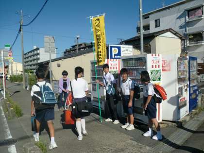 学校運営協議会主催のあいさつ運動が、町内9か所で行われました。写真は今伊勢駅南側の踏切での様子です。登校途中の生徒も参加してのあいさつ運動となりました。