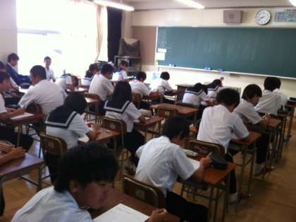 火曜日の1限目は道徳の時間です。2年生の教室では、クラスでさらに団結力を高めるために、担任の先生の工夫のもと、いろいろな活動が行われています。自分のクラスの良いところを班で話し合ったり、グループで体を動かしたり、どのクラスの生徒も表情がいきいきとしています。