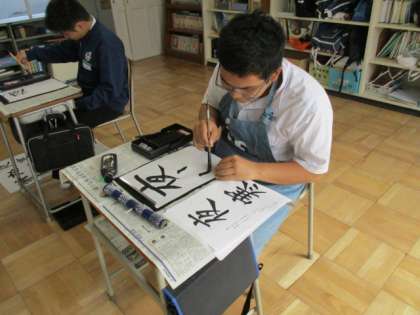 10月15日 10組の授業 公開日 2015/10/15 更新日 2015/10/15 お知らせ 国語の授業で習字を学習しています。今日の漢字は「夜寒」です。秋が深まって夜の寒さが強く感じられる季節を指します。最近,朝夕が冷えてきました。10組のみなさんも趣を感じながら,気持ちを落ち着けて半紙にむかって筆を運んでいました。
