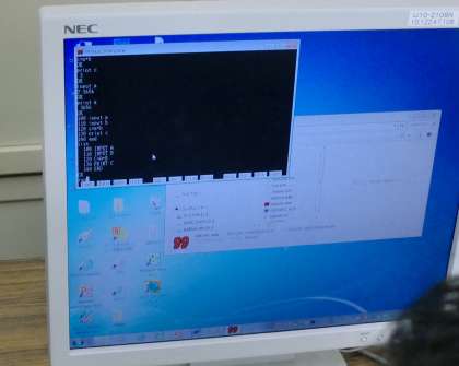 打ち込みが終わったら、いよいよ自分のプログラムを走らせます。(RUN)すると見事に足し算ができました。小さな歓声が上がりました。授業は、これから徐々に難しいプログラムになるようです。