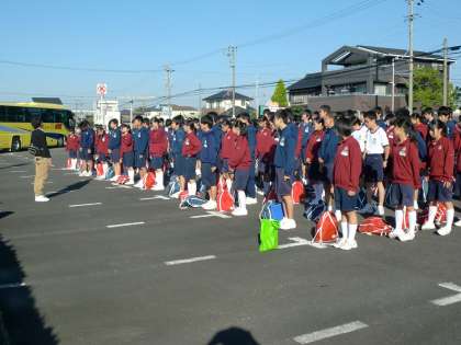 さわやかな秋空の下、3年生が校外学習に出発しました。目的地は、郡上八幡。お城を中心としたオリエンテーリングを行います。3年生にとっては、受験の合間のちょっと息の抜ける一日になることでしょう。また、郡上の特産である「食品サンプルつくり」も体験する予定になっています。楽しんできてほしいと思います。