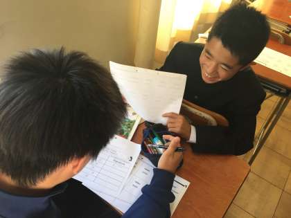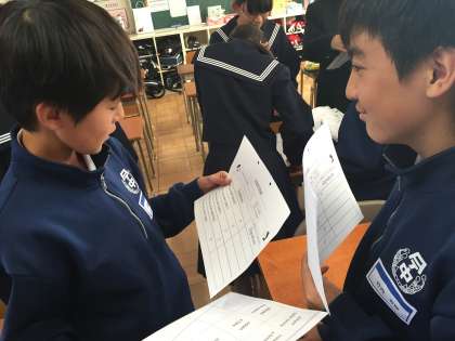 1年生が英語の授業でインタビューゲームを行っていました。小学生のときにもやったことがあったようで積極的かつ1年生らしく元気に大きな声でインタビューゲームに取り組んでいました。 ALTの先生にもインタビューをしている姿を見ることができました。