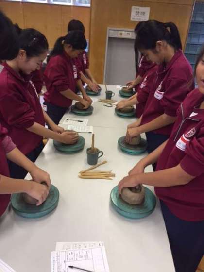 各体験場所で陶芸体験スタートです。講師の先生のお話を聞き、各々好きな作品を作っていきます。