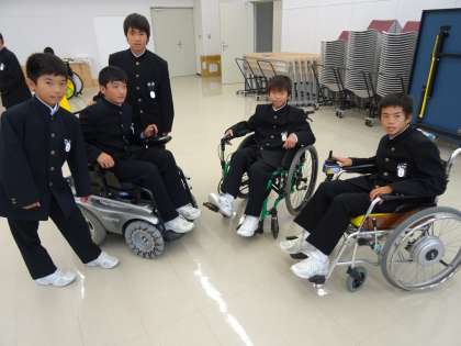 車椅子は,ターボ式のものや4駆(100kg)のものなどたくさんの種類の車椅子を体験することができました。