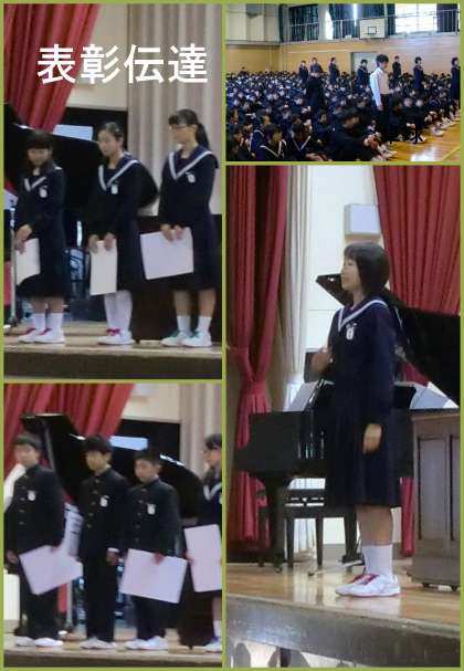 今日の集会は、ポスター、卓球、ディベート大会の表彰伝達から始まりました。毎週のように、各種大会で入賞者が出ることは大変喜ばしいことです。