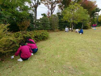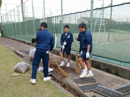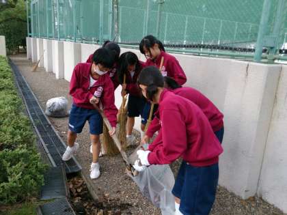 テニス場でも生徒たちは一生懸命清掃をしています。日頃使っているテニス場に感謝しながら、心を込めて活動を行いました。