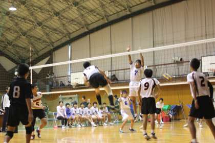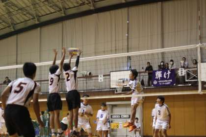 二回戦の相手校は蟹江中学校。試合は互いに譲らない展開となり,最終セットまでもつれこみました。最後まで手に汗握る白熱した試合となりましたが,26対24で3セット目を取り,見事勝利することができました。これでベスト4入りが決定し,同時に県大会の切符も手にすることができました。