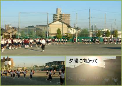 日没時刻が早くなったため、部活動が十分に行えません。そのため、冬季は「ランニングタイム」と称して、1,2年生の生徒が一斉に運動場を走ります。それぞれの部活動で目標が決められており、お互いに励ましあいながら長い距離を走ります。冬場の訓練は、必ず春、夏に実を結びます。苦しい練習に耐え、美しい花を咲かせたいものです。
