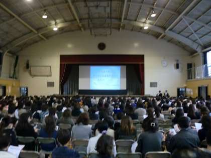 特に推薦入試の制度が変わります。ただ、推薦自体には何ら変わりがないことを、進路指導主事から説明がありました。人物が優れていること、自分が最も行きたい学校であること、相手校が求める資格等をもっていることなど。これらすべてが満たされて、初めて受験できるとの説明がありました。また、今年まで、推薦入試では学力試験が行われていませんでしたが、29年度からは学力試験が行われることも説明されました。