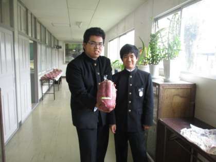 1人分が3.4kg位になるように組み合わせて家に持ち帰ることになり、お母さんのびっくりする顔を想像しながらナップに詰め込みました。休み時間中は「今日の晩御飯は何かな!?」と話題がはずみました。残りのサツマイモは、調理実習を行ったり販売実習をしたりします。今から楽しみでなりません。