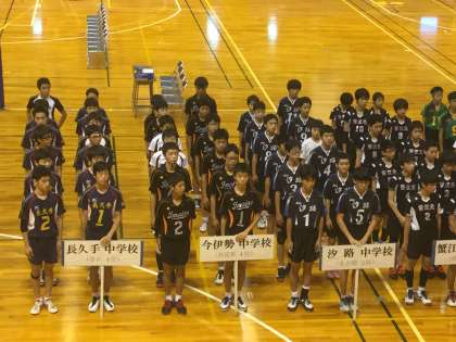 本日は弥富市社会教育総合体育館において,第34回愛知県中学生バレーボール新人大会の開会式が行われています。本校は10時からの試合に臨みます。対戦校は長久手中(愛日地区4位)です。応援よろしくお願いします。