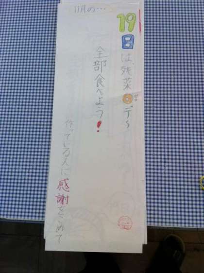 明日、残菜ゼロデーが行われます。学校全体で協力して残食をできるかぎり少なくしようと給食委員が企画をしました。写真はその残菜ゼロデーを呼びかけるポスターです。普段何気なく食べている給食ですが、調理場の方が精根込めて作ってくださった給食です。作っていただいている方への感謝の気持ちを忘れず、楽しい給食の時間を過ごしましょう。