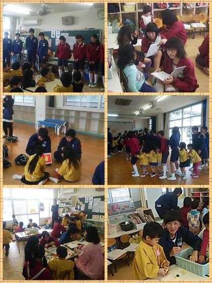 11月18日 3年生保育交流学習 公開日 2015/11/18 更新日 2015/11/18 お知らせ 昨日と違うクラスが今伊勢南保育園保育交流学習に出かけました。あいにくの雨なので室内遊びだけになってしまいましたが。とても楽しく活動しています。保育園の先生のピアノに合わせて歌ったり踊ったり。気がつけば中学生も園児以上に楽しんでしまいました。本来のねらいとは反対にお世話をしてもらっているようです。保育園の先生はすごい!自分たちもお世話になってきましたが、改めて感心したようです。