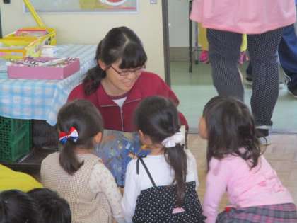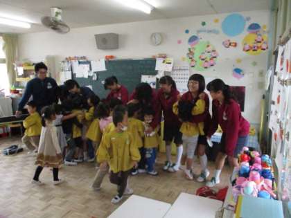 3年生の保育交流の2日目。楽しみにしていた3年生もたくさんいて、進んで園児たちと一緒に遊んでいました。かわいい園児たちと接して、3年生の子たちも、思わず笑顔でいっぱいになりました。園児たちと楽しく過ごしたひとときでした。こんな良い機会を与えてくださった保育園の方々、ありがとうございました。