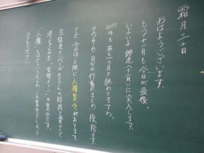 今朝も,気温は10度を下回り,寒い朝になりました。でも,メッセージを見ると温かくなりますね。今日で11月が終わります。明日からは12月です。長かった2学期もあと少しです。