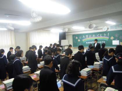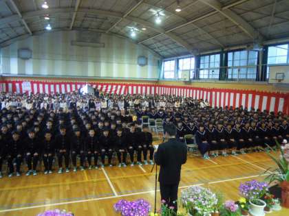 校長先生からは「中学校で大切ことは,勉強の仕方を勉強すること,ものの見方・考え方を深めること,多くの人との出会いを通して人との接し方を学ぶこと」とお話をいただきました。校庭のクスノキを例えに,大きく育つためにはしっかりと根を張ることが大切,そのために目に見えないところの努力を大切にしようと激励していただきました。
