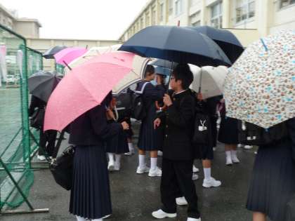 期待にあふれた顔、ピカピカの真新しい靴で元気に登校してくれました。あいにくの天候でしたが、「恵みの雨」ということで新しい門出を潤してくれたことでしょう。3年間、いろいろなことを吸収して大きく成長していきましょう。