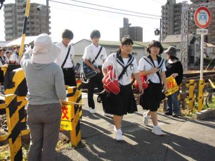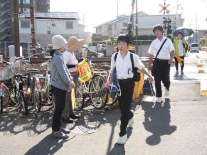 今日は、今伊勢中学校の交通指導日です。早朝より、PTA学級委員の皆様による交通安全指導とあいさつ運動が行われました。生徒の皆さんが登校する通学路の踏切や交差点などの5ヶ所に立っていただきました。道路は多数の人が使いますので、ルールやマナーを守って登下校してほしいと思います。確実に安全確認をしたり、道を譲ったりできるように、時間にゆとりをもって登校してください。PTA学級委員の皆様、ありがとうございました。