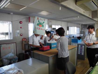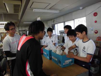 6月14日 10組販売実習 公開日 2017/06/14 更新日 2017/06/14 学校生活 本日、職員室にて、10組の畑で収穫した玉ねぎを先生方に販売しました。10組の生徒たちが大切に育てた玉ねぎを多くの先生方に買ってもらうことができました。次は何を育てようか10組全員で考えています。