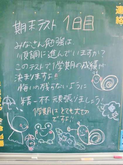 期末テスト1日目!どの生徒も真剣な眼差しでテストに臨みました。3年生にもなると,テスト勉強計画も本当にしっかりと立てることができます。計画通りにできたのか毎日振り返りを書き,計画表もどんどん再考・修正していきます。