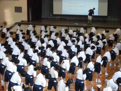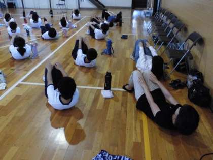 6月27日 学校保健委員会 公開日 2017/06/28 更新日 2017/06/28 PTA・楠の会 講師の先生をお招きして学校保健委員会を行いました。1年生を対象にけがの予防や健康について学び、理解を深めました。正しい姿勢や、正しい筋力トレーニングの方法を実技をまじえて教えていただきました。保護者の方にもご参加いただき、一緒に体を動かしていただきました。ご協力ありがとうございました。