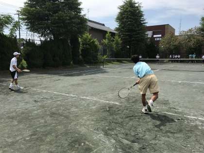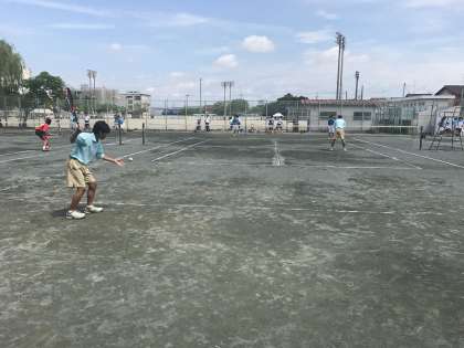木曽川中学校には西成東部中学校も来ており、3校で練習試合を行いました。今日はできるだけたくさん練習試合ができるように6つのコートを使って行いました。それぞれの部員にとって良い経験になったと思います。