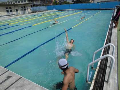 昨日までの雨とはうってかわり,本日は絶好のプール日和となりました。男子は先生の話をしっかりと聞いた後,背泳ぎやクロールなどの泳法で一生懸命取り組んでいました。
