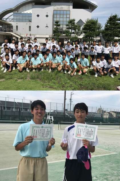ソフトテニス部男子は、市テニス場で行われた一宮市総合体育大会に参加しました。今日は個人戦の決勝戦と団体戦が行われ、3年生を中心とした選手たちが出場しました。