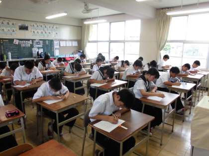 本日の朝の時間に、「序数」のテストを行いました。先週の平常テストの「数字」とは違い、覚えるのに苦労した生徒も多いと思いますが、3連休で勉強した成果を出せたと思います。1学期終了まであと二日となりました。明日は、1学期最後の授業になります。良いしめくくりをして、夏休みを迎えてほしいと思います。