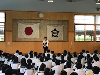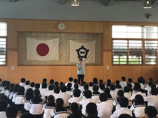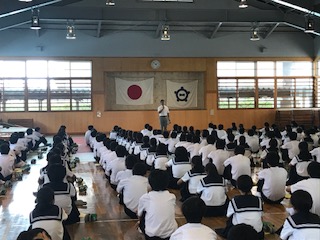 2年生は5時間目に武道場で1学期最後の学年集会を行いました。祖父江先生からは夏休みの生活について,自分の身を大事に,そして夏休みという時間をどう使うかというお話がありました。