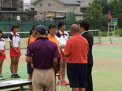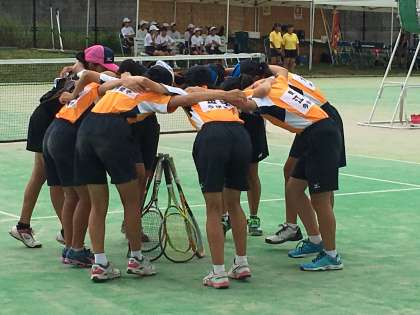 各地区から勝ち上がってきた学校ばかりで、接戦もありました。準決勝では、ゲームカウント1−3となり、あと1ゲーム取られてしまうと負けてしまうというときに、雨で中断しました。この中断で流れが変わり、ファイナルゲームを取り、4−3で勝つことができました。
