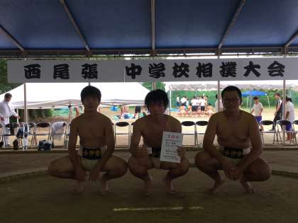 愛西市立永和中学校にて、西尾張相撲大会が開催されました。これまでの練習で、自分たちに足りない部分を仲間同士で教え合う姿に成長を感じていましたが、本番でも、練習で見つけた「自分の相撲」を十分に発揮しました。