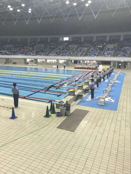 日本ガイシアリーナにて愛知県中学校総合体育大会水泳競技会が行われました。本日は200m自由形と200m平泳ぎと800m自由形に3人の選手がそれぞれ出場しました。続々と新記録が生み出され、独特の緊張感が会場を包んでいました。そんな中、3人とも一生懸命に泳ぎ、ベストタイムを更新する選手もいました。明日は400m自由形に1人が出場します。皆様、応援ありがとうございました。引き続きよろしくお願いします。