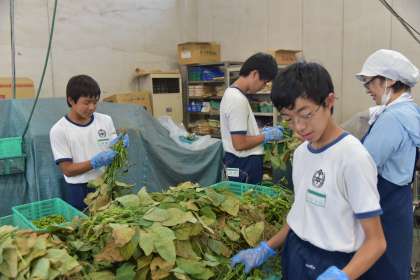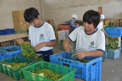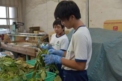 卸売市場での作業風景です。慣れない手つきでしたが、みんなで協力しながら、一生懸命頑張りました。