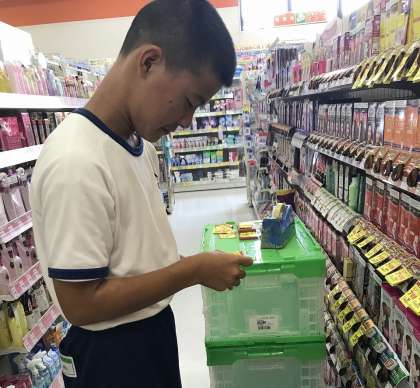 今日も大変暑くなってきていますが,2年生は各事業所で頑張っています。ドラッグストアでは商品出しを丁寧に行っていました。普段経験のできない仕事に生徒の目も真剣そのものです。