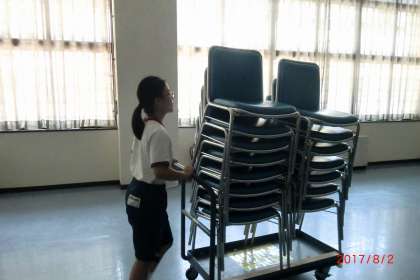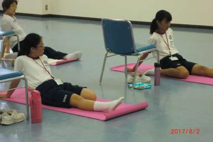 一宮市のスポーツ文化センターにも2名の生徒がお世話になりました。館内の掲示物を作成したり,利用者の方と一緒に体操をしたりしました。体を動かした後は,室内の後片付けを率先して行いました。