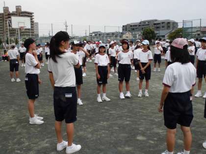 9月5日 体育祭の練習が始まりました。 公開日 2017/09/06 更新日 2017/09/06 学校生活 今日から体育祭の練習が始まりました。今日は6時間目には、入退場の練習。7時間目は、応援の練習を行いました。 応援の練習では、3年生が優しく、丁寧に1・2年生に声のかけ方や動きを教え、初日ですが、どの群団も振り付けが進みました。 これから毎日練習するなかで、互いに協力したり、時にはぶつかることもあるかもしれませんが、体育祭を通し子供たちが成長していくことを楽しみにしています。